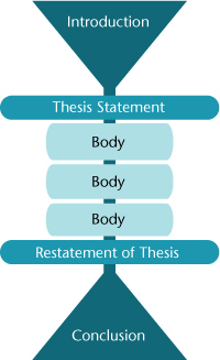 High-quality theses do both. *Organization thesis: Your thesis might indicate an organization of elements to be discussed. For instance, in the classic academic 5-paragraph essay (which we're not limited to), a thesis often lists 3 items or sub-points, which three body paragraphs discuss one at a time, followed by a one-paragraph conclusion. For an essay on your writing experience, a three-item thesis might say, "Throughout my writing career I have faced difficulties with grammar, organization, and style," creating expectations that the first body paragraph will deal with grammar, the 2nd with organization, and the 3rd with style.