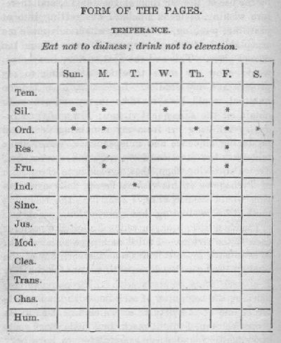 made a little book, in which I allotted a page for each of the virtues. I ruled